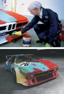 Warhol painting the BMW Art Car IV, 1977 — Unlike his artist predecessors, he painted directly onto the car, had not produced a small scale model first and was done in a mere 23 minutes – The stuff legends are made of.