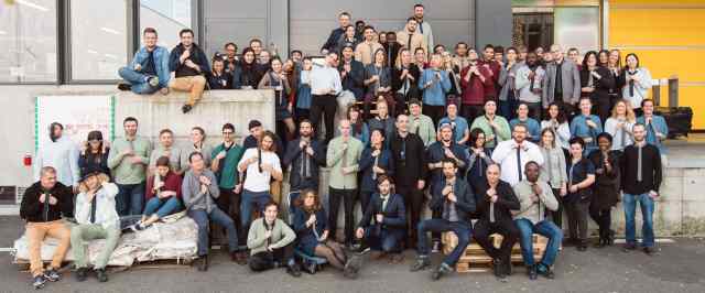The holacratic organization in front of the Freitag F-abrik